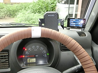 シート後ろのスペースには板を渡して棚を作る。タコメーターはどうしてもほしかったので、レーダー探知機を購入してOBDUアダプターを介して情報を受けて表示。