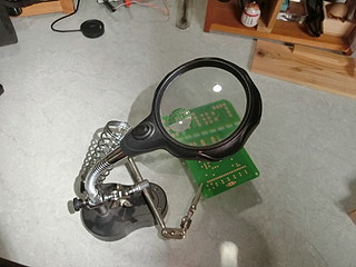 これは自分が家で使っている作業スタンド。普段は板の上で作業しているが、細かい作業時にはルーペとライトがついたこのスタンドを使っている。(この頃は、ルーペ自体はヘッドルーペを使っているが)