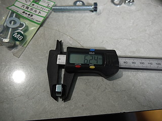M8のネジ山を作るのは難しいのと、遊びやガタが出ても困るので、中にナットを仕組むよう大きさを測る。