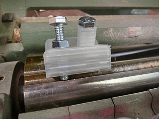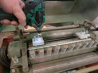 取り付けたところ。ストッパー用のボルトは内部と上部に2つのナットがあるため一度位置決めすると動かない。現在の刃の位置で固定する。