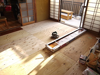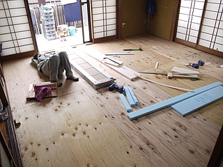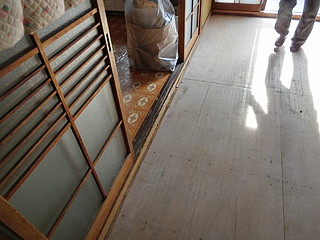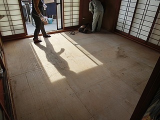 前回畳表を変えたのはいつだったか。父親の座るところはかびてきてしまったり、よく通るところは削れてしまったりしていたので、フローリングに変更することにした。