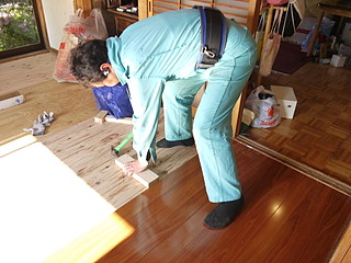下地作りでこの日は終了となり、次の朝6時からフローリング材を施工開始。