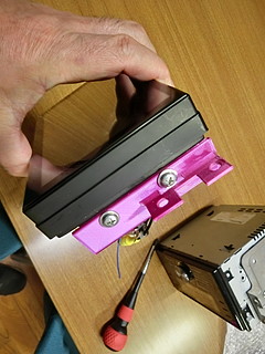 一番下の娘が、冬に向けてタイヤ交換に帰ってきたので、ついでにカーステレオを換装することにした。姉のお下がりの軽自動車でスマホからラジオ経由で音楽を流していたので、ディスプレイオーディオにアップグレードする。 今までのものも壊れているわけではないが、以前買って一度姉の車に取り付けて、やっぱり違う物にして浮いていた製品があったのでそちらを取り付けることにした。 変換コネクタを買ってあったが、実際には今まで使っていたものも同じコネクタだった。中国製のカーステレオは裸線が出ているだけなので、ギボシ端子に直接はんだ付けする。フラックスを利用して上手く付けることができた。 2DINのサイズは同じだが、取り付けステーは使えなかったので、3Dプリンタで自作する。 今回のものはこんなに筐体が薄いので取り付け部より後ろ側で固定する以前の鉄のものでは全く用が足せなかった。本体が軽いため、強度も十分な感じ。 後は接続とネジ止めだけという状態。 実は左右方向の穴の位置が2mmずれていたので、ステーの厚みを左右とも1mmずつ増やしてもう一度プリントし直した。このステー2つで2時間ほどの出力時間。 今度はバッチリ収まった。 アンドロイド機でプレイストアも入っているので、すきなアプリを入れることができる。ナビはGPSだけついているので、Googleマップで使うことになる。娘も喜んで使ってくれるようで良かった。