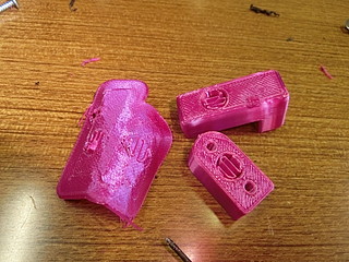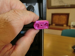 3mmのタッピングビスとプラグを使って、部品を固定することにして押さえを出力。