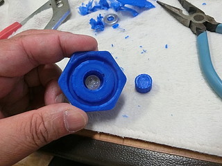 内部に埋め込むために、ナットを付けてネジを締める。