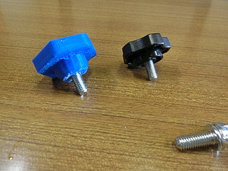 この黒いネジが無くなったので、ネジを買ってノブを3Dプリンタで出力することにした。