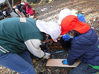 材料はたくさんあったので、6つの縦割り班で2つずつ、計12の巣箱を作ることにした。