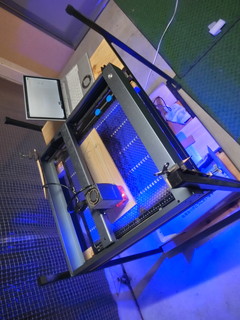 高価で大きなレーザ加工機を購入したので、専用の加工テーブルを製作しました。 材料は25mmの角パイプ。今年個人的に購入した半自動溶接機で組み立てます。 切断中はハニカムプレートでレーザが抜けるように棚板が取り外せるように設計。 両側には角パイプで補強と、加工機の足が乗る梁を溶接。 移動も可能なように、大きなキャスターを溶接で固定。 足の端には、3Dプリンタでキャップを出力してカバーする。 4本の足は機械よりも高い位置まで伸ばしてあるので、ここに段ボール製のカバーを掛けて保管しています。