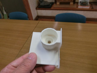 一人一台端末の利用が日常的になり、子どもたちは写真やビデオでの記録を当然のように行っている。 理科の顕微鏡で観察した結果をiPadで撮影するには、固定や位置決めがなかなか難しく、時間がかかってしまう。 そこで、顕微鏡用のアダプタを3Dプリンタで製作した。 最終的な形状はこんな感じ、接眼レンズから15mmほど離れたところにカメラレンズが位置する形が一番良かった。 かなりの試行錯誤で光軸をあわせることになった。最終的に造形時のサポート材もいらない形に落ち着いた。 理科の先生曰く、今までは撮影に15分くらいかかったのに、これなら一発でよいとのこと。 角を押し当てることで、位置はずれずに決まる。さらにピンチアウトすると四角い画面いっぱいにすることもできる。 似たような製品があるようだけれど、これでずいぶん節約でき子どもたちも楽に喜んで使ってくれると思う。