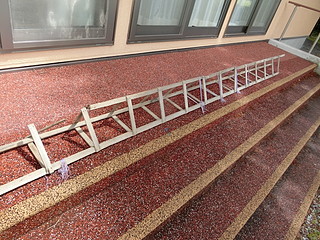 防犯訓練で、さすまたをすぐ取り出せるところに置くよう指導を受けたので、職員室前の壁に取り付けることにする。