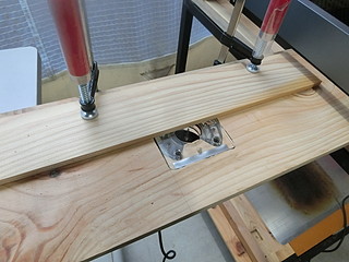 テーブルの間に固定して、横のガイドはその都度クランプで固定することにした。簡易的なものだけれど活躍してくれそうです。
